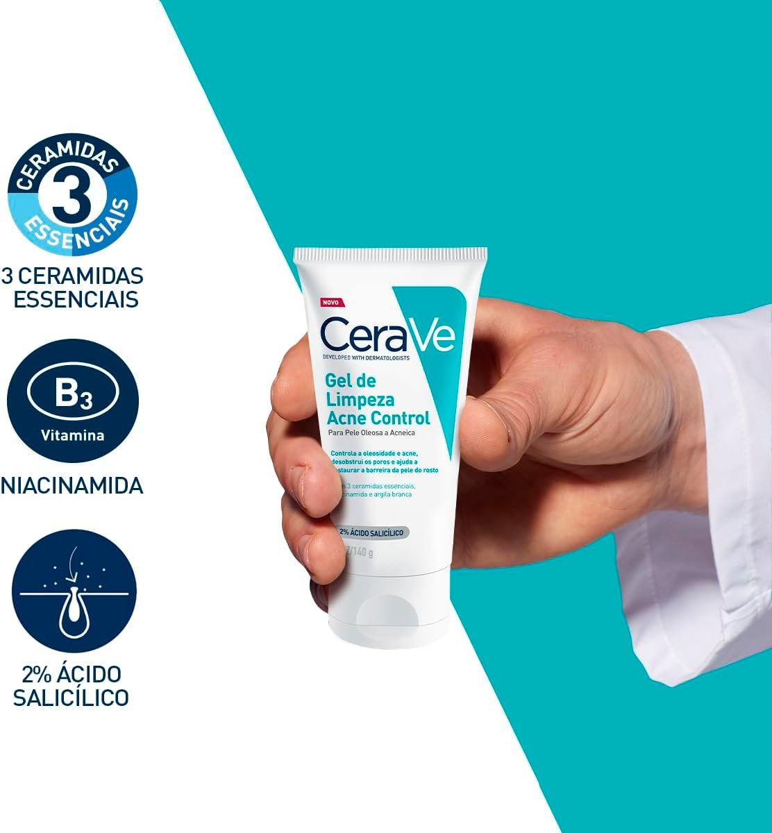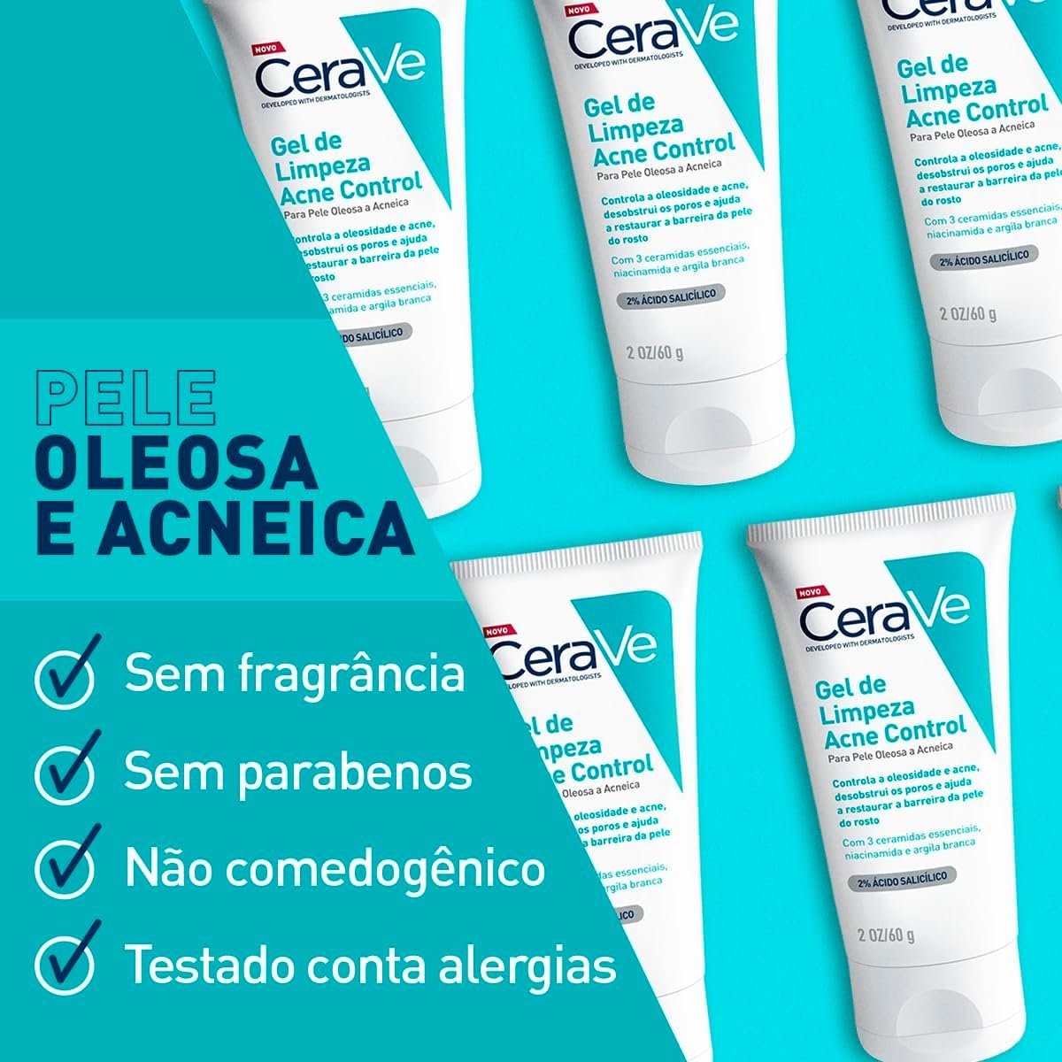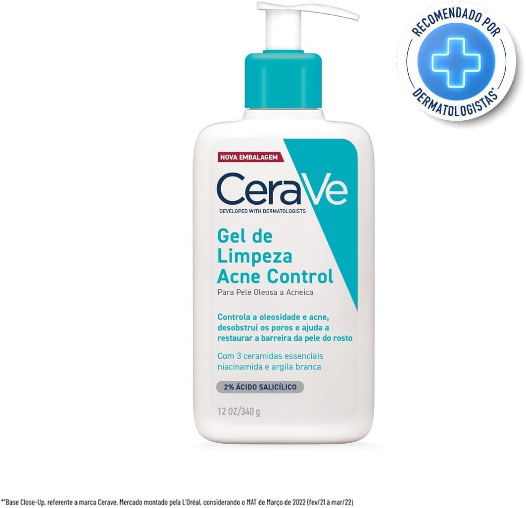 Como cuidar da pele oleosa e com acne usando CeraVe Acne Control O Gel de Limpeza Acne Control CeraVe é o tratamento perfeito para peles oleosas e com tendência à acne, eliminando impurezas e combatendo novas espinhas, enquanto reduz a aparência dos poros sem agredir a pele.Sua fórmula contém 2% de ácido salicílico, com eficácia comprovada na redução de 40% das espinhas em sete dias e 25% dos cravos em duas semanas, resultando em uma pele mais luminosa e saudável.Criado em parceria com dermatologistas, este produto regula a oleosidade e libera os poros, ao mesmo tempo que preserva a barreira cutânea através de 3 ceramidas fundamentais, niacinamida e argila branca.Oferece um tratamento diário completo e seguro, mantendo a hidratação natural e prevenindo o efeito rebote, proporcionando uma pele higienizada e protegida.Conteúdo: 1 x Gel de Limpeza Acne Control CeraVe 340g, indicado para uso diário em rotinas matinais e noturnas voltadas ao controle da acne e oleosidade.