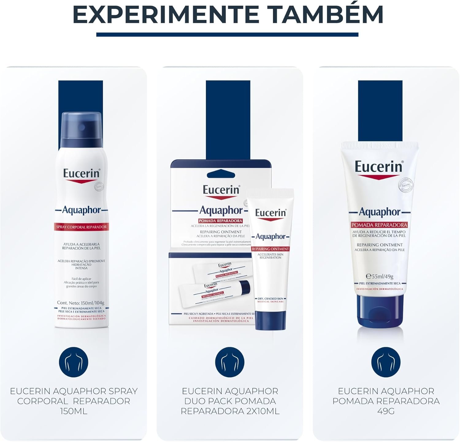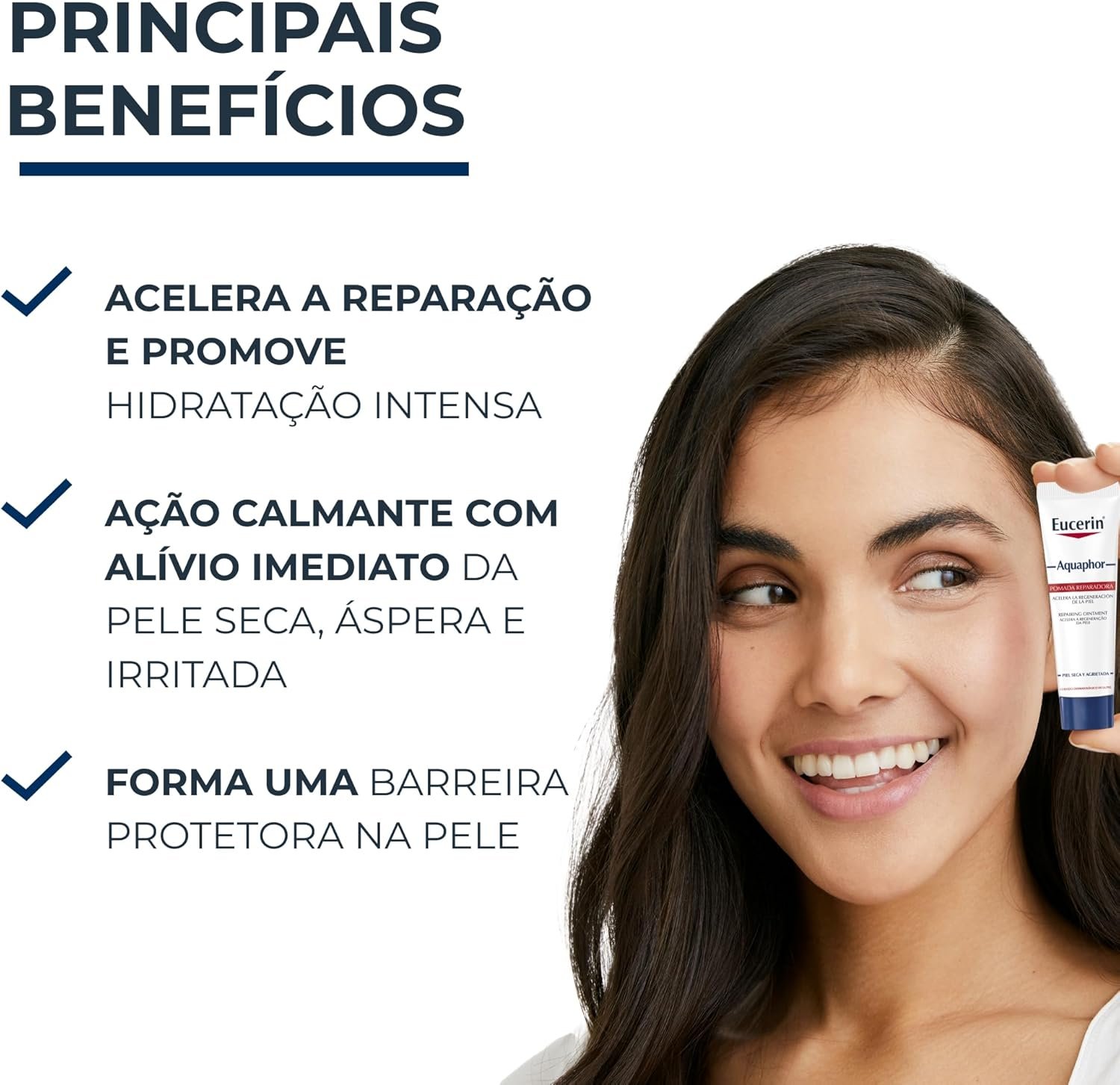 Eucerin Aquaphor Pomada Reparadora que acalma e repara pele extremamente seca, criando barreira protetora ideal que estimula a renovação natural da pele. Ideal para áreas específicas do corpo e do rosto. Muito boa eficácia e tolerabilidade, mesmo em pele extremamente seca.