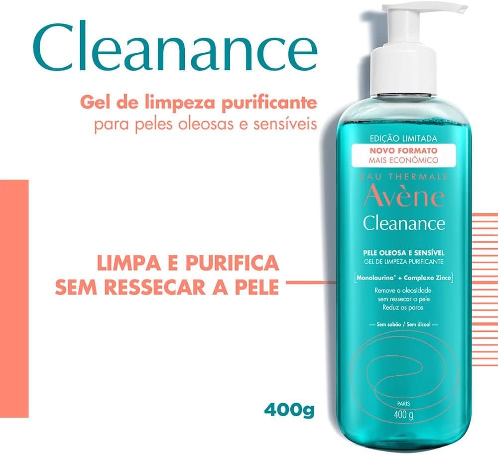 Gel de Limpeza Facial Avène Cleanance, Controle de Oleosidade e Desobstrução de Poros, 400g